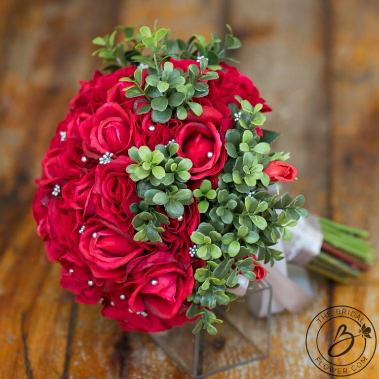 Be the first to review “Red roses real touch wedding bouquet with greenery”
